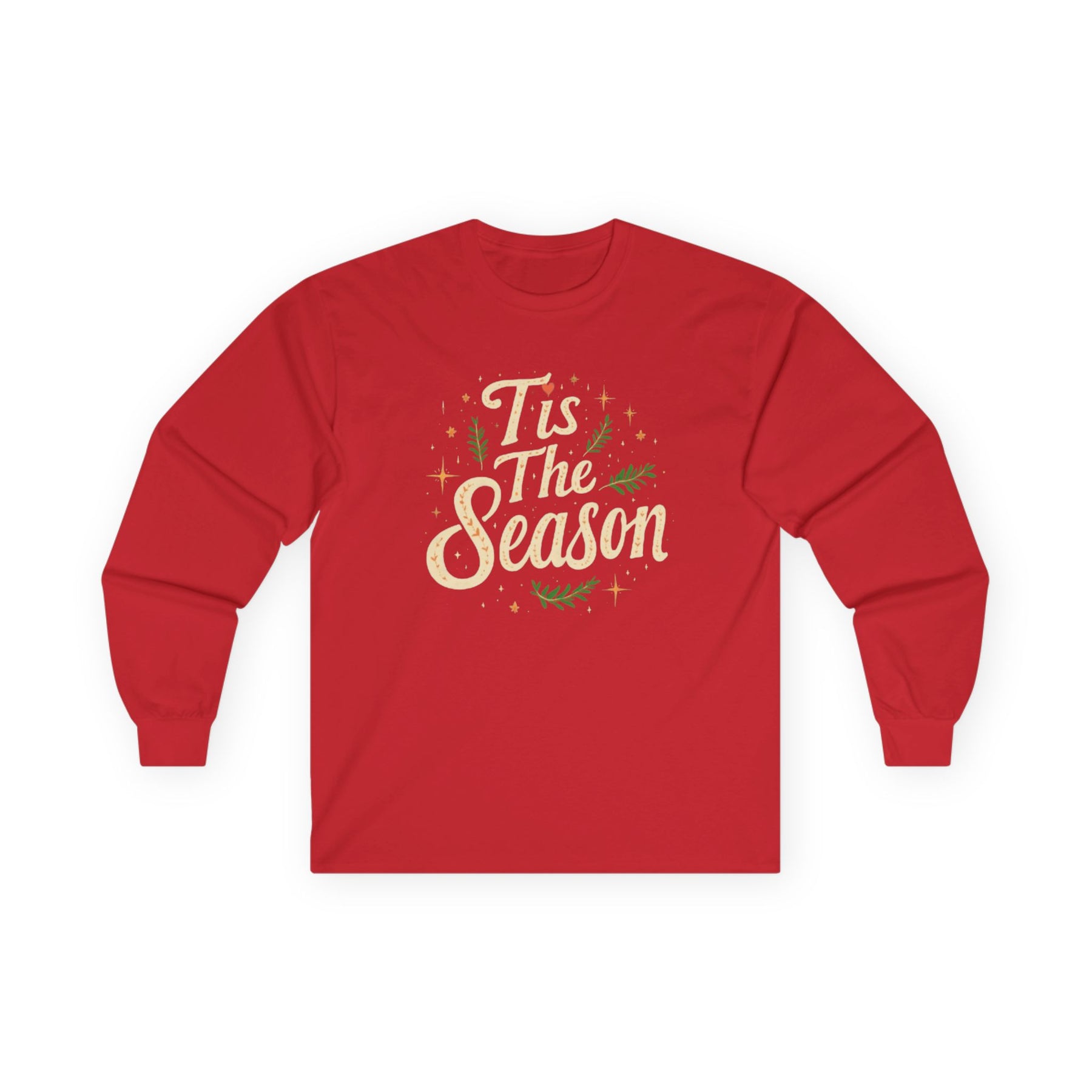 Classic hand lettered script wrapped in festive greenery and twinkling stars for a warm seasonal vibe. Soft long sleeve comfort perfect for family photos, holiday markets, or cozy nights in.