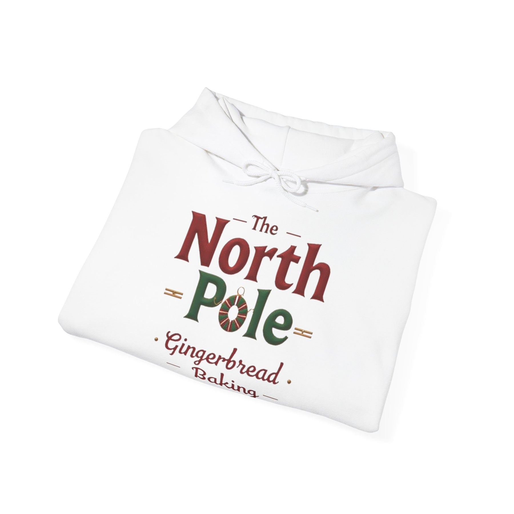 Bring a touch of vintage holiday charm to chilly days; this soft hoodie features classic “North Pole” lettering and gingerbread baking accents for a cozy, seasonal look that feels like a warm cup of cocoa. Perfect for festive mornings, gift shopping, or wrapping up by the fire.