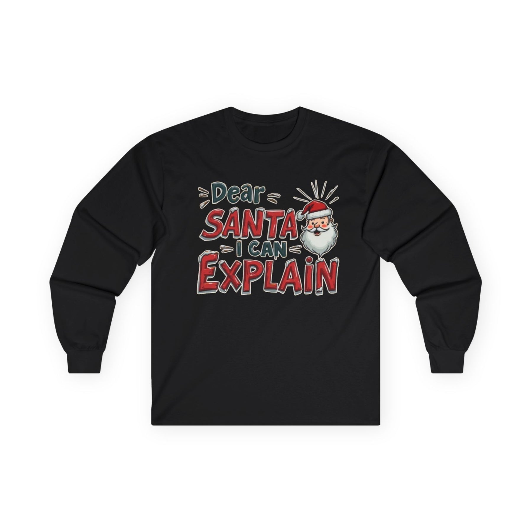 Witty lettering and a cheeky Santa add mischievous charm to your festive wardrobe. Wear it to family gatherings or as a lighthearted Secret Santa pick.