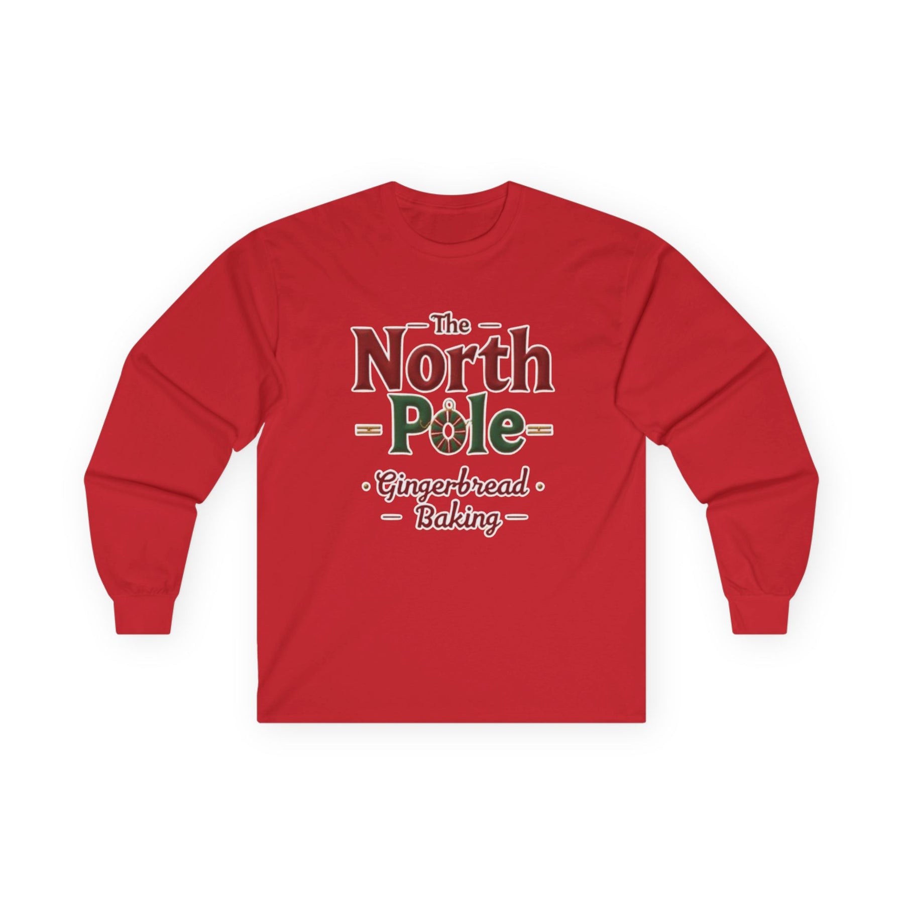Classic holiday lettering with a vintage sign look and warm gingerbread bakery accents. Cozy long sleeve comfort made for baking mornings, festive markets, and gifting to the cookie lover in your life.